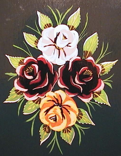 There is something very special in the boatmans cabin of Pangur Bán, the Knobsticks style roses painted by the late Jim Wain