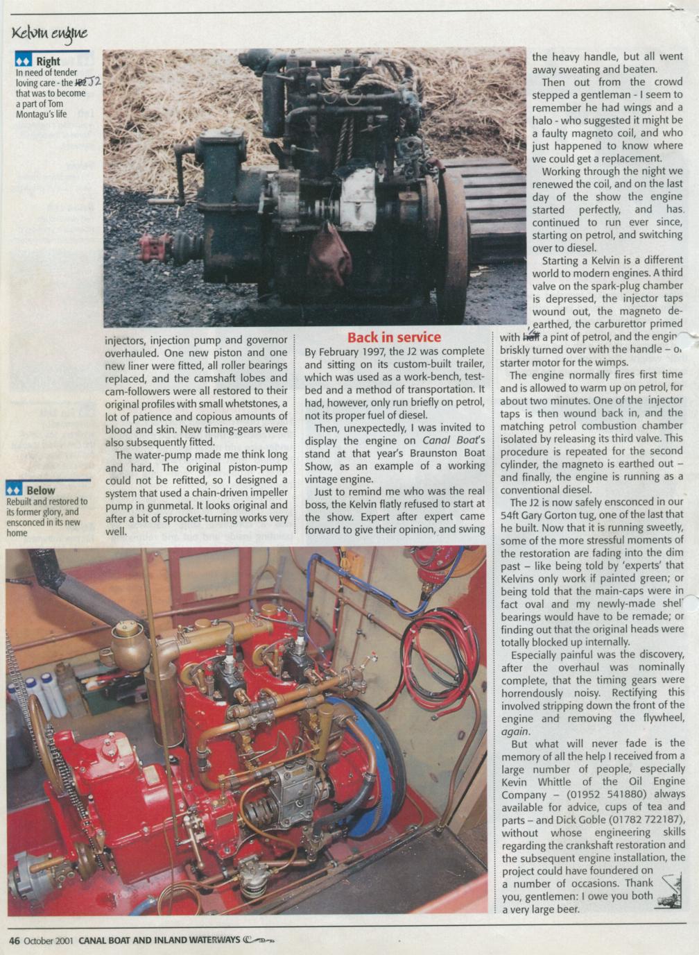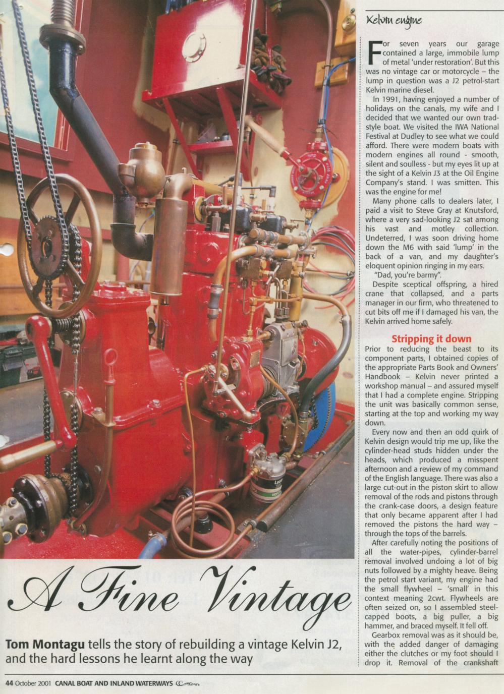 Canal Boat and Inland Waterways October 2001 A Fine Vintage Tom Montagu tells the story of rebuilding a vintage Kelvin J2 and the hard lessons he learnt along the way