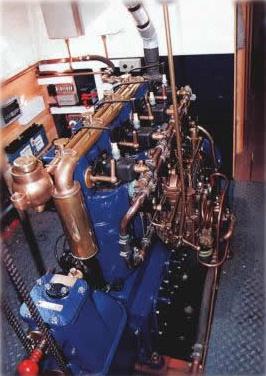 To call this engine a monster is to do it an injustice. It certainly is big. At five feet long, there is just room to get round it in the eight foot engine room. It's heavy, although at 17cwt not as heavy as some and it's cubic capacity at 6 litres, is bigger by half than the biggest Jaguar V12. Each cylinder is bigger than the entire engine of your average hatchback. Whilst nothing could be described as delicate, the Kelvin exudes refinement too. It only holds a gallon of oil in its sump whereas some of its contemporaries need a five-gallon drum for an oil change. Many of its components show engineering finesse. Brass castings are fine but functional. The engine governor is a modest masterpiece.