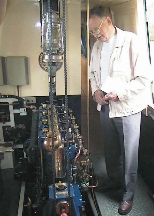 Mr. George Bergius, the son of the founder of the company that made the Kelvin engines, standing next to the authors own J4 Diesel No. 18506