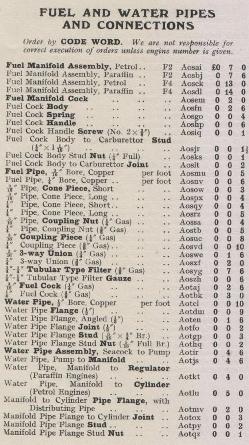 Kelvin Ricardo Model F Spares List