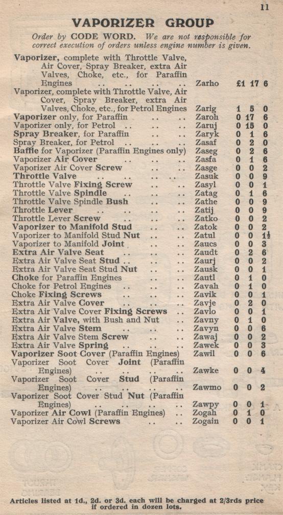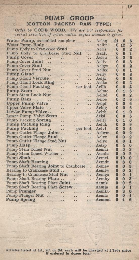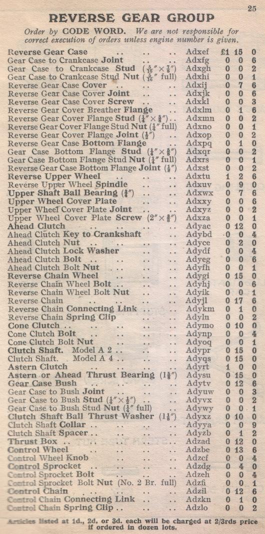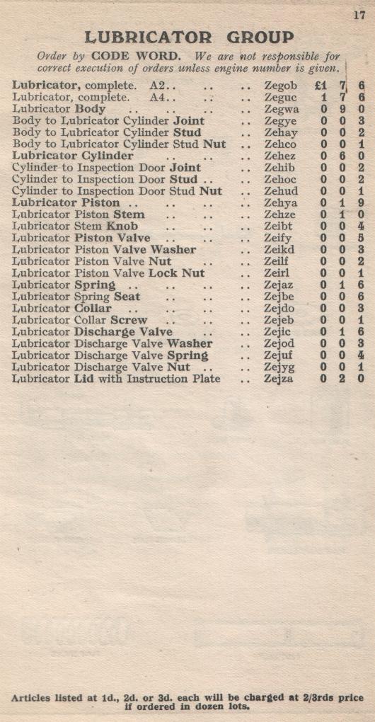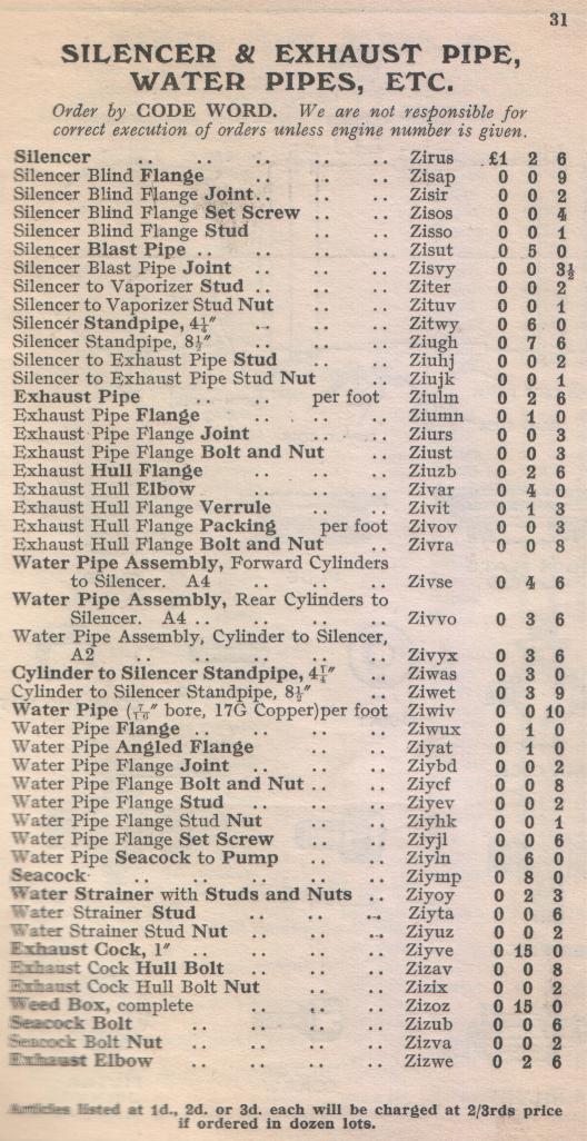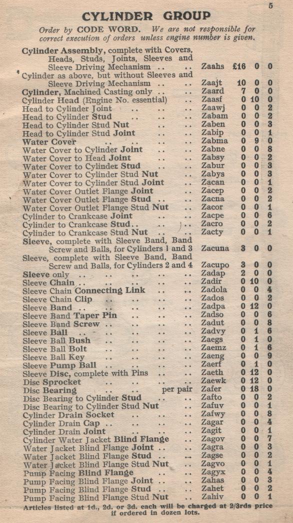 KELVIN-SLEEVE Spares List Model "A"