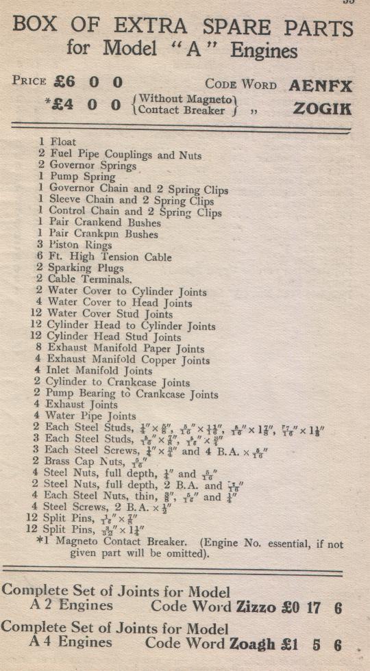 Box of Extra Spare Parts for Model "A" Engines